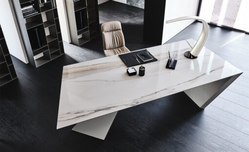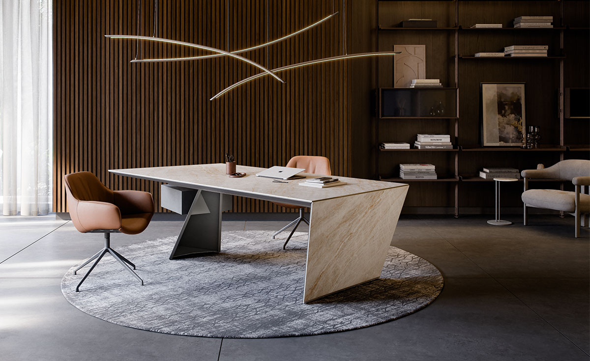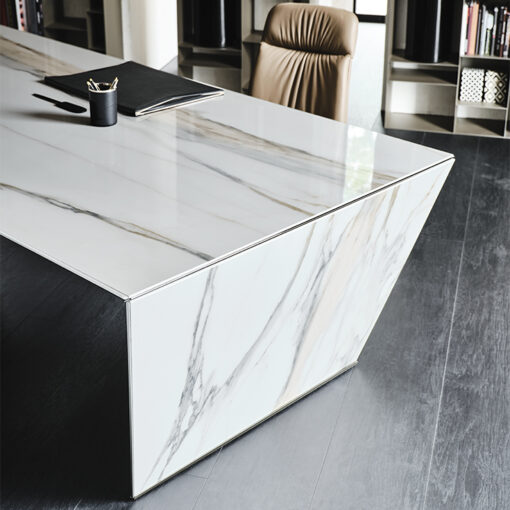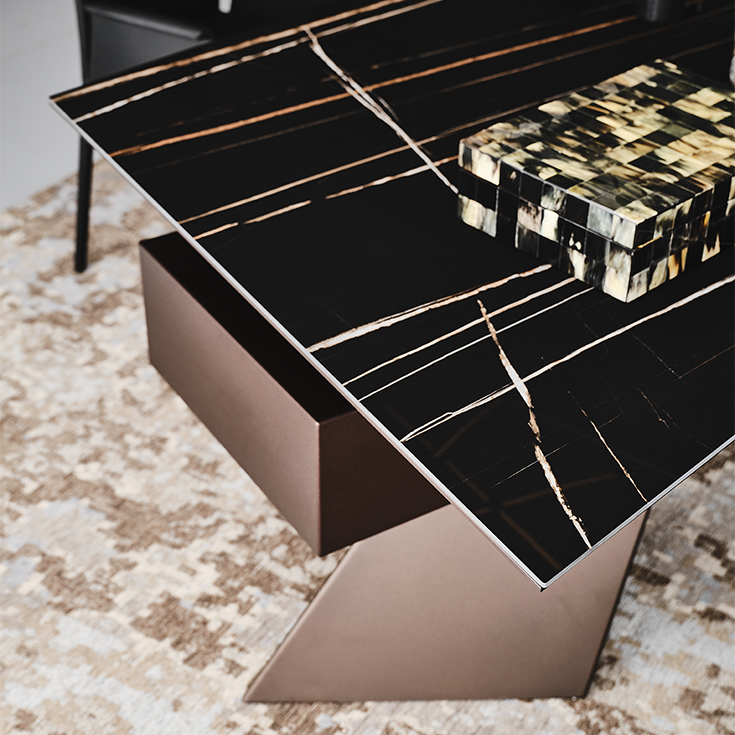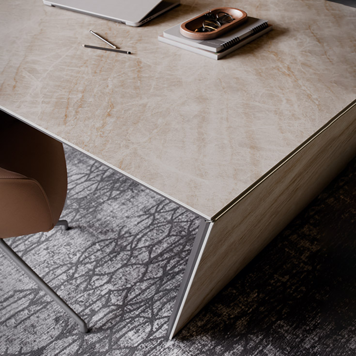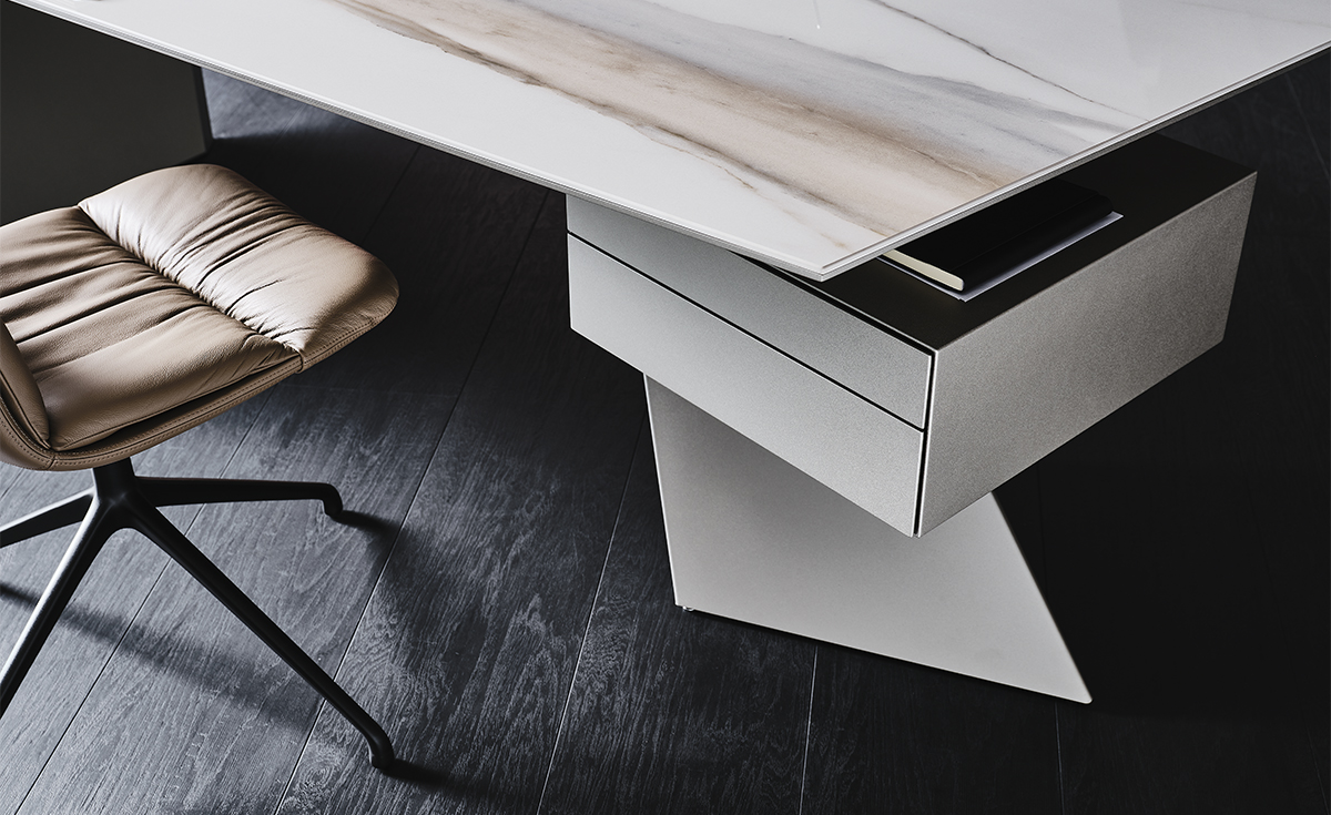 Nasdaq Keramik je výrazný pracovný stôl, ktorý okamžite pritiahne pozornosť. Kombinuje čisté geometrické línie s prémiovými materiálmi a vytvára silný, sebavedomý prvok v každom priestore.