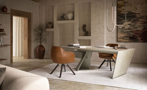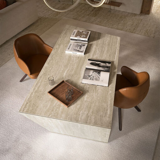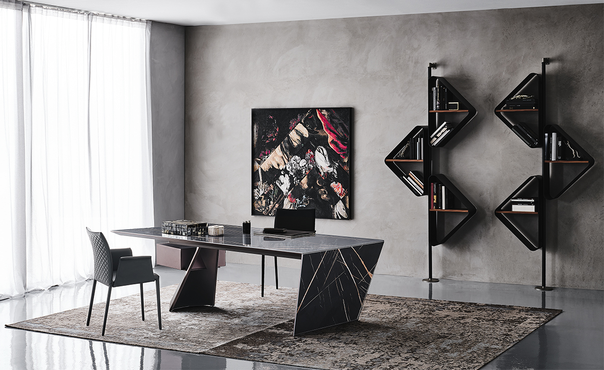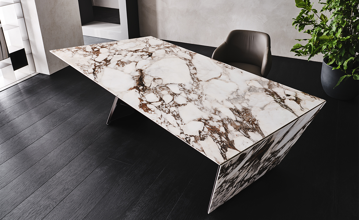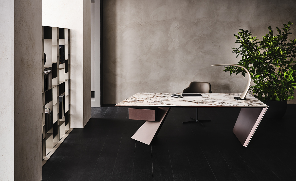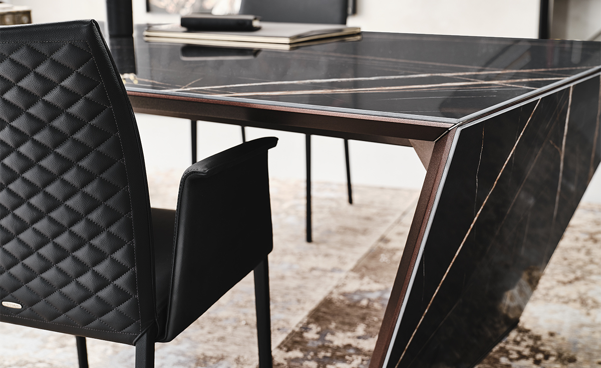 Nasdaq Keramik je výrazný pracovný stôl, ktorý okamžite pritiahne pozornosť. Kombinuje čisté geometrické línie s prémiovými materiálmi a vytvára silný, sebavedomý prvok v každom priestore.