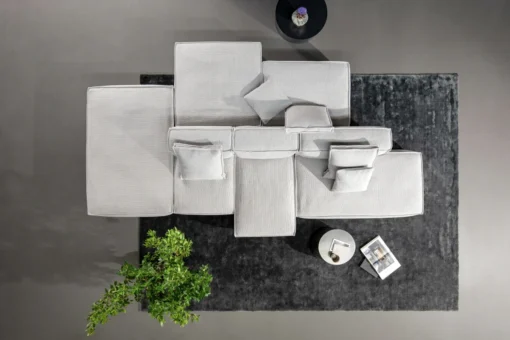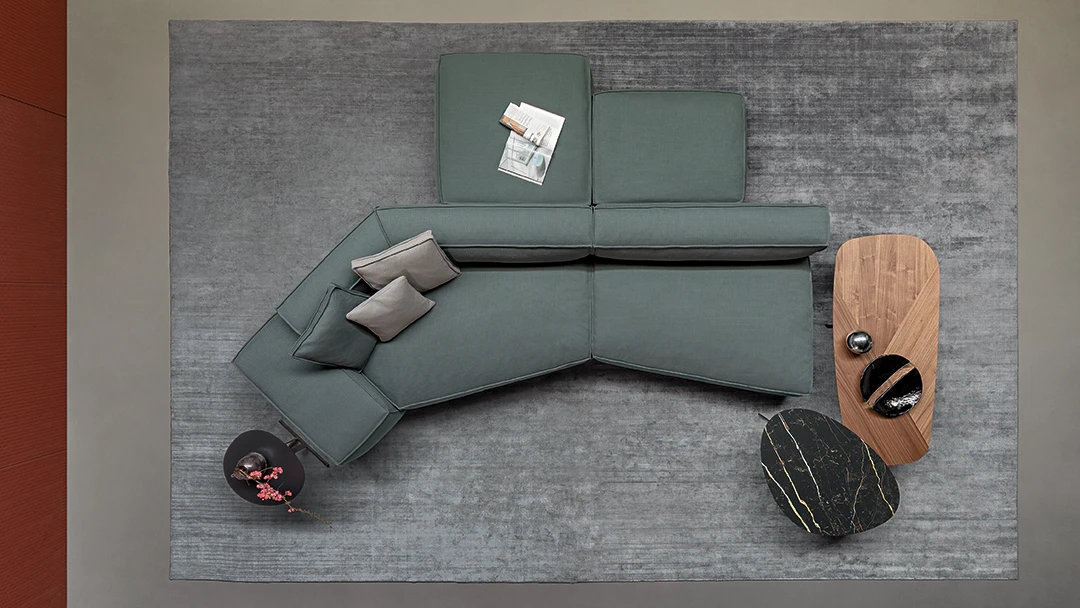 Vďaka širokej škále modulov je Peanut B. mimoriadne flexibilná – prispôsobí sa akémukoľvek interiéru, štýlu aj dispozičnému riešeniu. Môže byť usporiadaná klasicky pri stene, ale rovnako pôsobivo funguje aj ako ostrov v strede miestnosti, kde prirodzene vytvára priestor na stretnutia, relax a socializáciu.