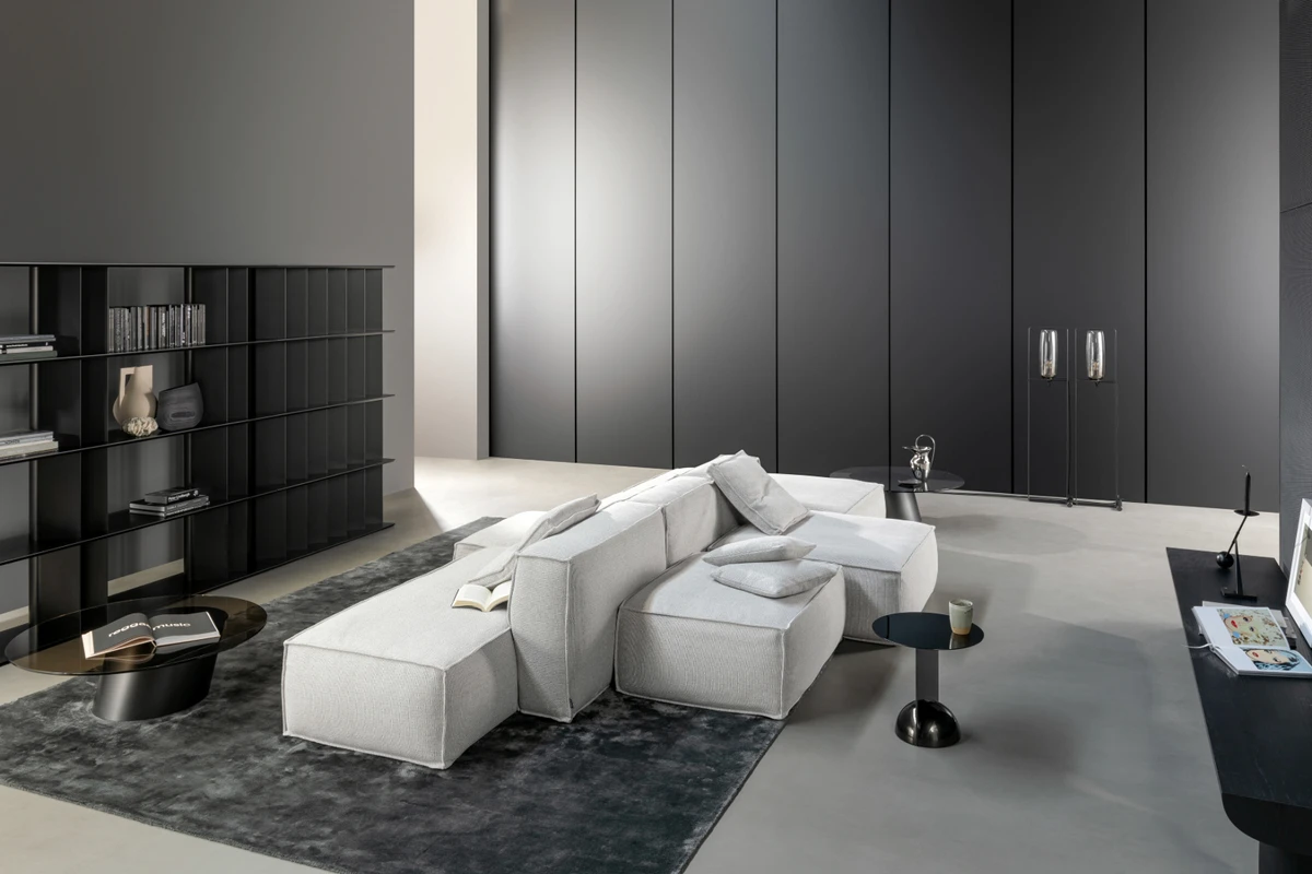 Precízne prešívanie obopínajúce mäkké objemy sedákov vytvára jemný kontrast s čistejšími, geometrickejšími líniami konštrukcie a rôznymi hĺbkami sedu. Výsledkom je sedačka, ktorá sa dokáže prispôsobiť priestoru aj životnému štýlu – ikonický kus nábytku, ktorý spája dizajn, komfort a kreativitu.