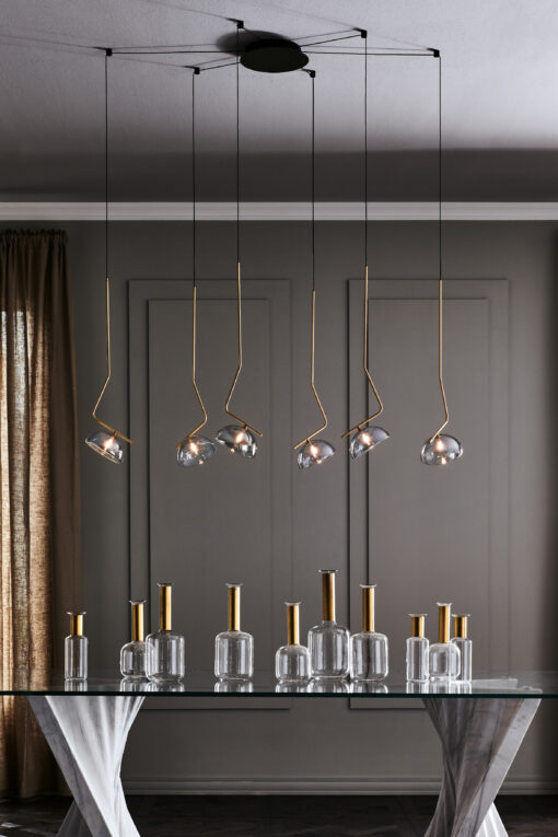 Objavte kolekciu svietidiel Sunset, ktorá spája elegantný minimalizmus so zmyselnou hrou svetla. Charakteristický tvar jemne zakrivených mosazdných línií a fume sklenených tienidiel pripomínajú posledné lúče zapadajúceho slnka. Či už ide o stolnú lampu alebo závesné svietidlo, Sunset vytvára jedinečnú atmosféru plnú tepla, štýlu a jemnosti.